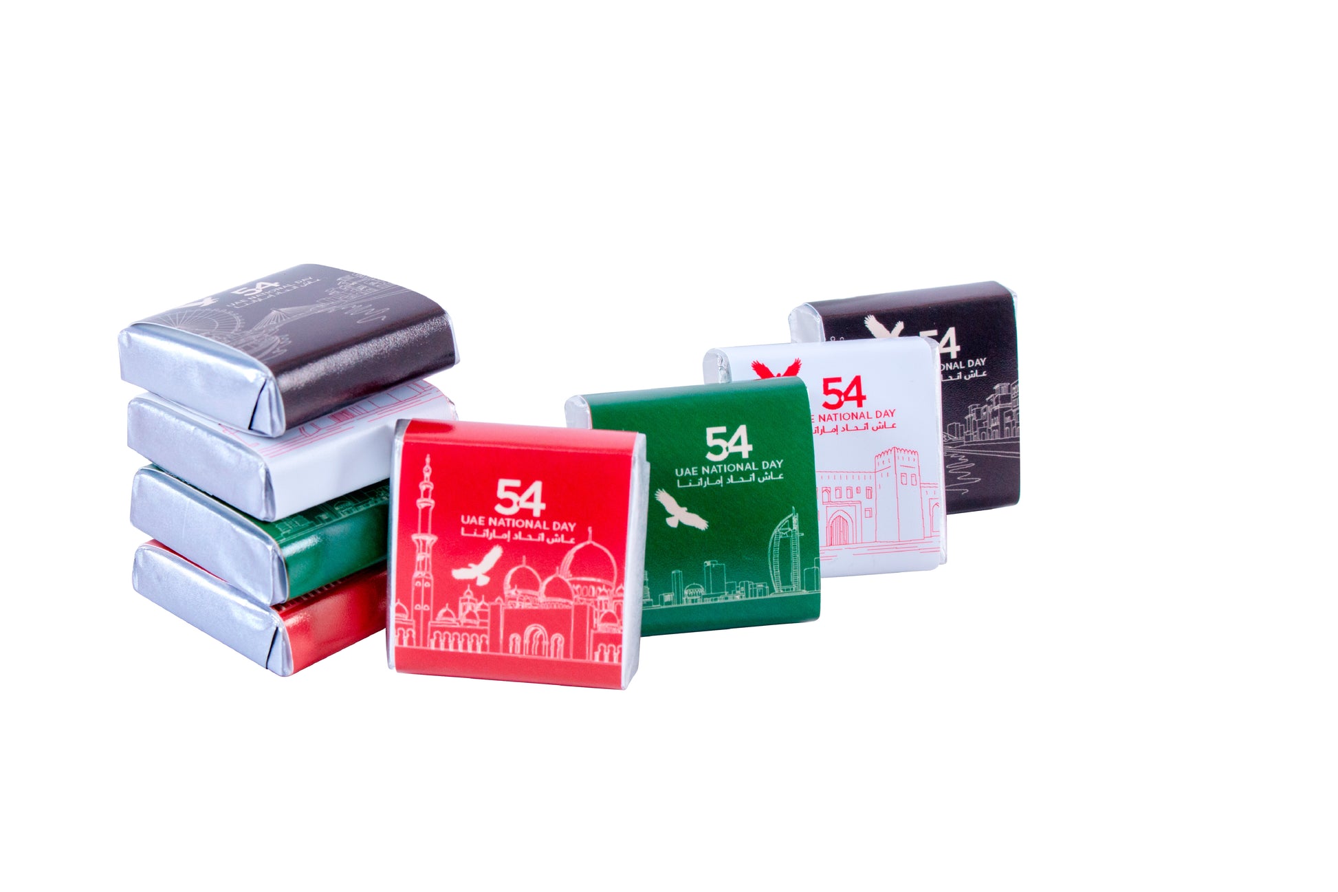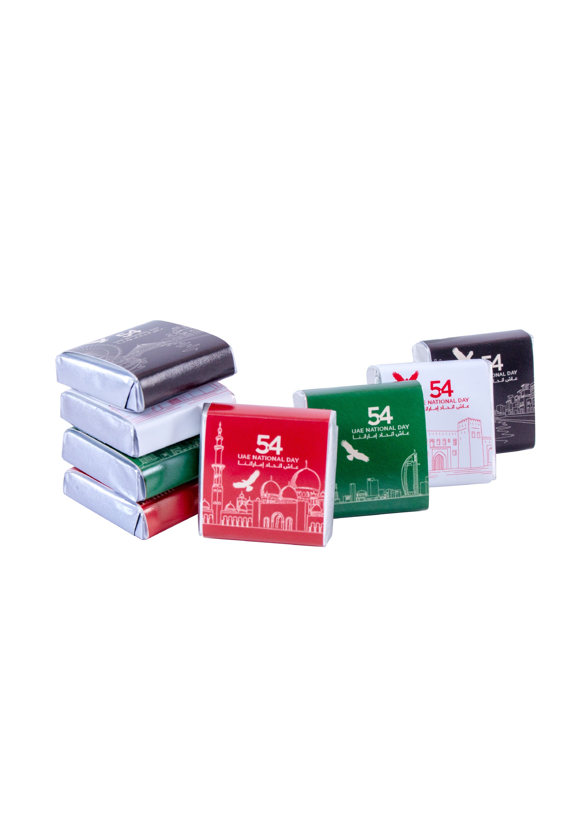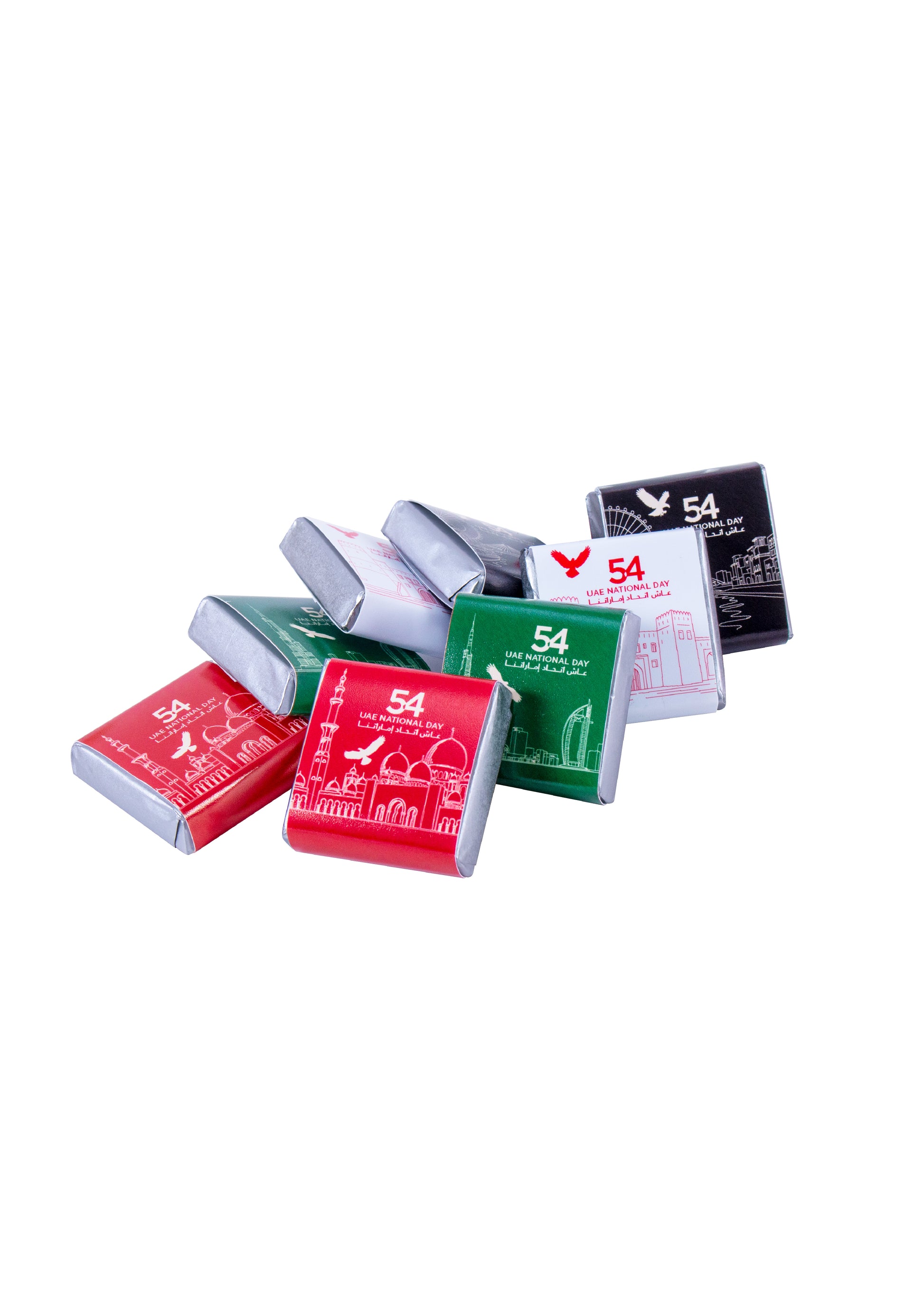 A premium assortment of approximately 60 square chocolates in milk and dark varieties, each blended with crunchy mixed nuts.